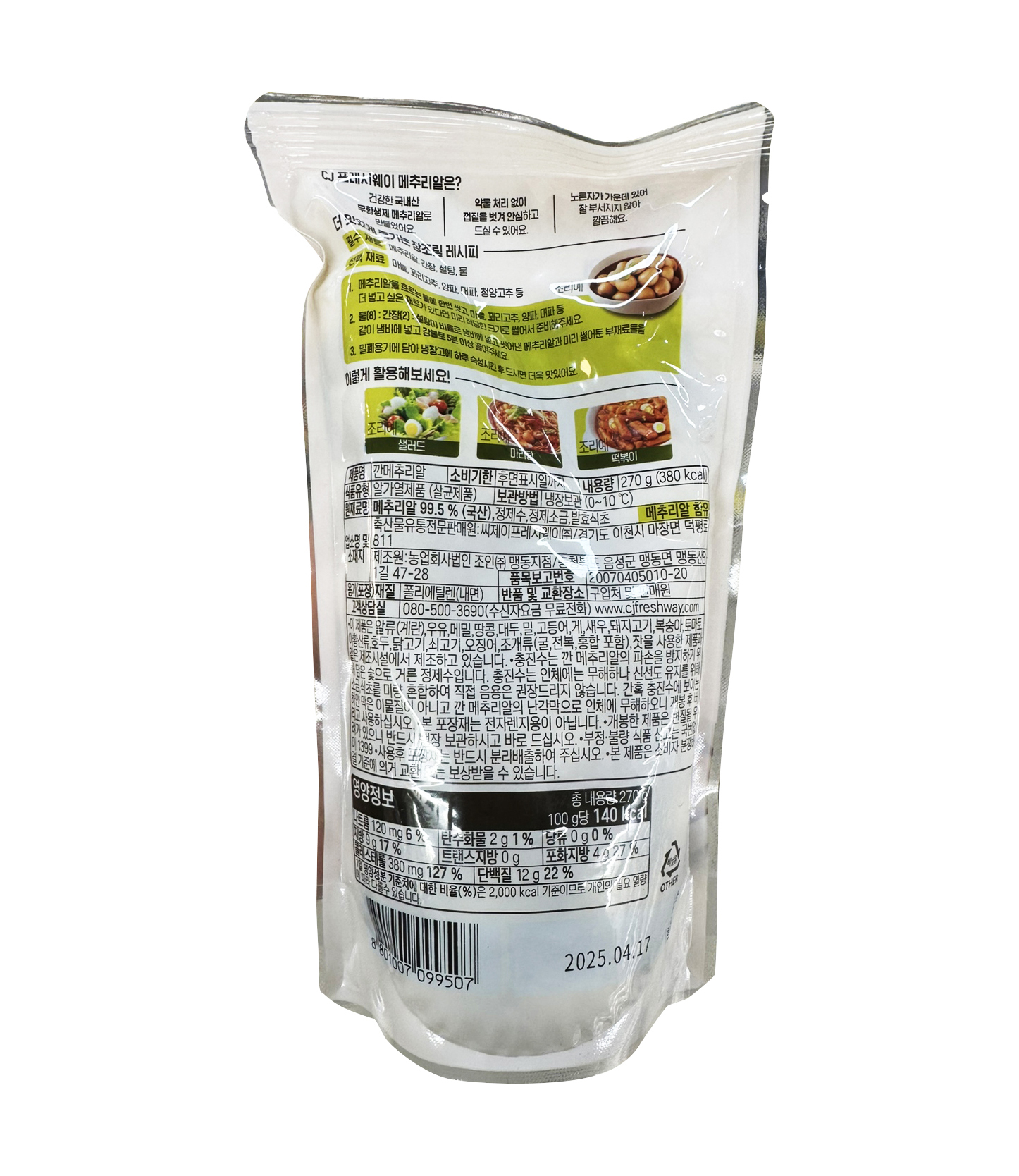 [CJ] 깐메추리알 270g